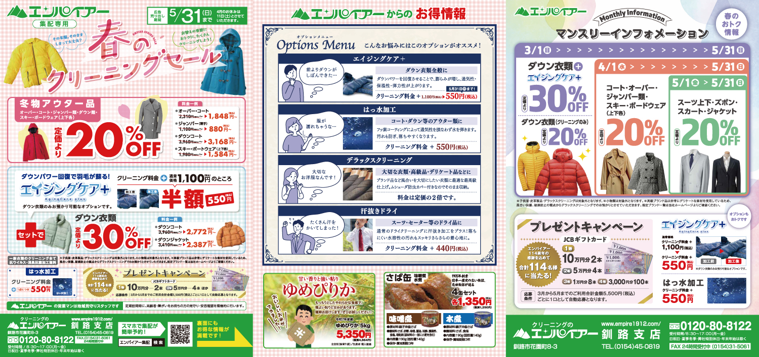 > 今月のセール情報【釧路市など、釧路管内】